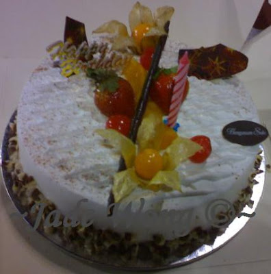 Accompanied Liyan to Ang Mo Kio central to buy this cake, so nice. It's black forest. Liyan and I chose that as Jingting don't eat almond and chocolate cakes were used for the last three celebrations. Carry that one kilogram cake do help me to train some muscles. This has however strain a little on my swollen foot, or ankle. Haha.